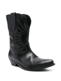 Wish Star boots Highlights - Black - Double pull-tab at the opening - Branded leather insole - Cuban heel - Embroidered motif Made in Italy Composition Sole: Calf Leather 100% Outer: Calf Leather 100% Lining: Calf Leather 100% SIZE & FIT Measurement HEEL 1.65 in(4.2 cm)