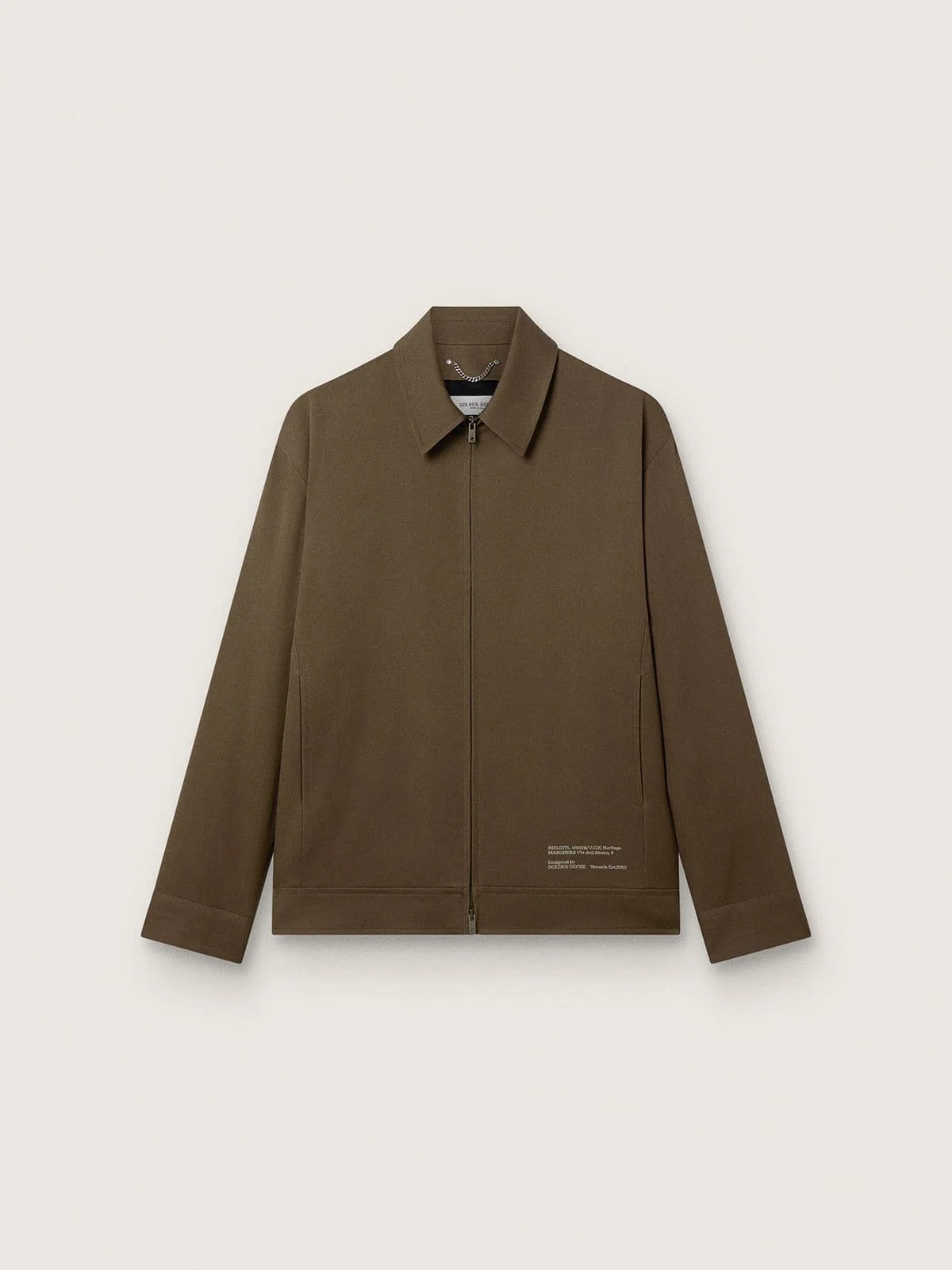 Beyond the limits of space and time, our Spring Summer 2026 collection was created to be remembered. This regular-fit men's coach jacket in brown virgin wool features a center double zip fastening. The embroidered lettering on the front and double star on the back add the finishing touch. DETAILS Item No. GMP02271.P002410.55218 - Journey Collection - Color: brown - Regular fit - Coach jacket style - Main material: 100% virgin wool - Lining material: 100% cotton - Sleeve lining: 100% viscose - Embroidery material: 100% polyester - Made in Italy The model is 185 cm tall and is wearing a size 48.