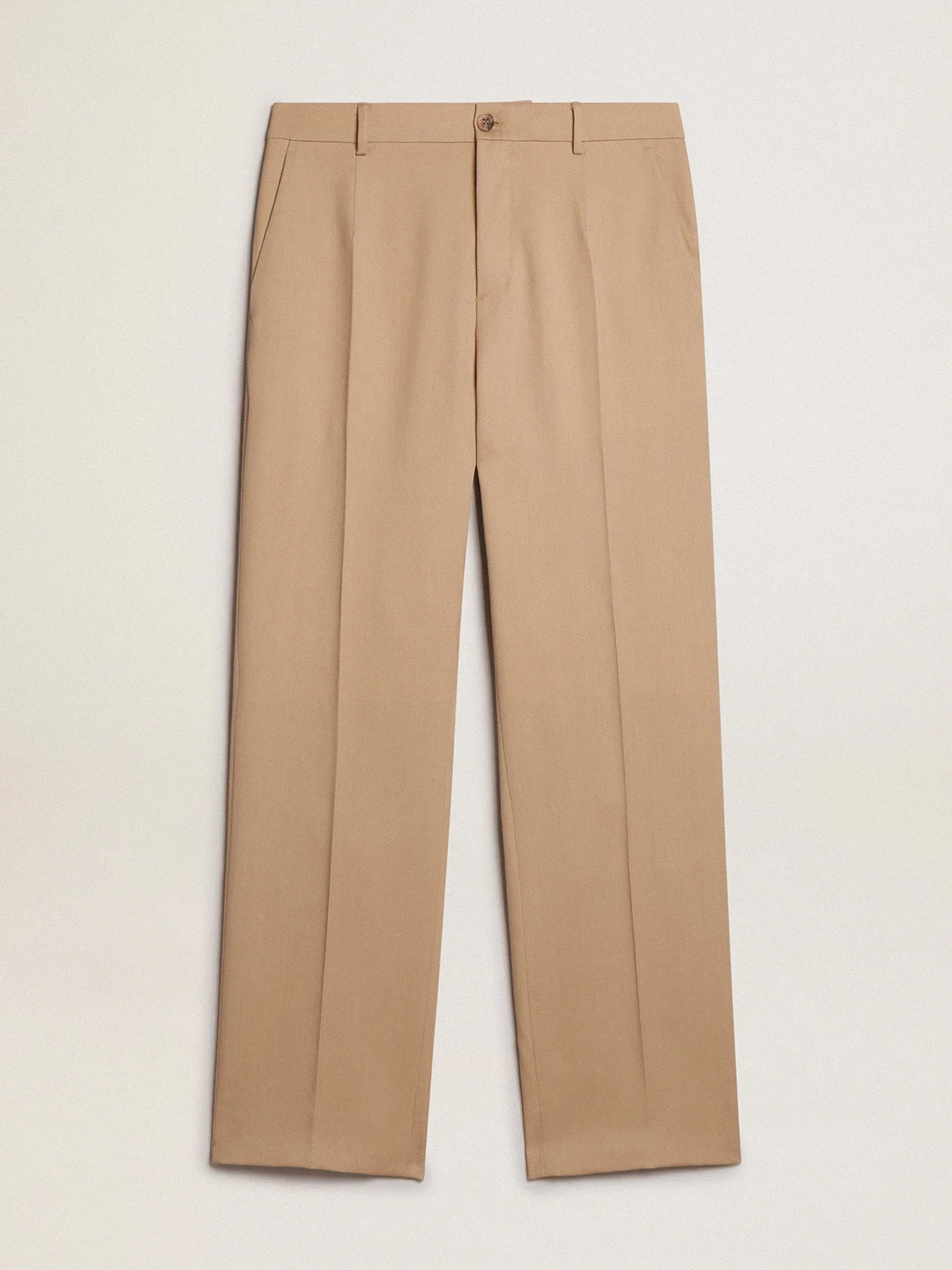 A unique, timeless collection that encapsulates the Golden Goose DNA, designed to remain with you every day, through thick and thin, come rain or shine. These men’s wool gabardine pants in sand feature a high waist, wide leg and a detachable white patch with a finely embroidered letter G in red. DETAILS Item No. GMP01503.P001170.15272 - Golden Collection - Color: sand - Double gold star on the back - Detachable white patch with embroidered red letter G - Four pockets - High waist - Wide leg - Main material: 100% wool - Lining: 64% viscose, 36% cupro - Pocket lining: 65% polyester, 35% cotton - Made in Italy The model is 183 cm tall and is wearing a size M.