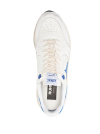 Running leather sneakers Highlights - White/electric blue - Panelled design - Smooth grain - Faded effect - Distressed effect - Perforated toebox - Logo patch at the tongue - Signature star patch to the sides - Contrasting branded heel counter - Round toe - Front lace-up fastening - Ridged rubber sole - Branded leather insole - Mesh lining Made in Italy Composition Lining: Calf Leather 100%, Fabric 100% Outer: Calf Leather 100% Sole: Rubber 100% SIZE & FIT Measurement HEEL 1.77 in(4.5 cm) Sole height 1.18 in(3 cm)
