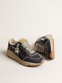 Urban style and a spirit of craftsmanship are combined in our Running Sole sneakers: the ideal companion for your metropolitan adventures. This model in dark blue nylon with beige foam rubber details features a white printed star and a dark blue leather heel tab. The dark blue suede insert and ice-gray laces add the finishing touch. DETAILS Item No. GMF00215.F004035.50749 - Dark blue nylon upper with beige foam rubber details - White printed star - Dark blue leather heel tab - Dark blue suede insert - Beige foam rubber tongue - Ice-gray laces - Vintage finish - Upper: 51% textile polyurethane, 40% polyamide, 9% cow leather - Lining: 72% cotton, 20% cow leather, 6% polyester, 2% textile polyurethane - Sole: 100% rubber - Handmade - Made in Italy