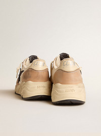 Urban style and a spirit of craftsmanship are combined in our Running Sole sneakers: the ideal companion for your metropolitan adventures. This model features an upper in white nylon and old rose nubuck accentuated with a dark blue suede star and beige leather heel tab. The white mesh tongue and toe and white laces add the finishing touch. DETAILS Item No. GMF00126.F005956.15421 - White nylon and old rose nubuck upper - Dark blue suede star - Beige leather heel tab - White mesh tongue and toe - White laces - Vintage finish - Upper: 58% cow leather, 29% polyamide, 13% polyester - Lining: 56% cotton, 22% polyester, 19% cow leather, 3% textile polyurethane - Sole: 100% rubber - Handmade - Made in Italy