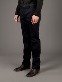 silm fit trouser Navy cotton blend trousers from Golden Goose featuring a waistband with belt loops, a fly front, side pockets and back jetted pockets. Made in Italy Composition Cotton 98%, Spandex/Elastane 2% Washing instructions Dry Clean Only
