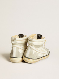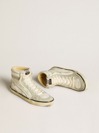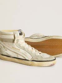 Slide LAB in aged-white nappa leather with gray suede star and white leather flash