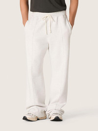 A collection with a casual soul but a versatile attitude: inspired by the Seventies, it has a timeless vintage appeal, suited to any occasion or look. Made in gray melange cotton fleece, these unisex sweatpants feature a wide fit, a raw-edge hem and two welt pockets on the front. The white tubular drawstring at the waist, the back zip pocket, and the stars on the back complete the look. DETAILS Item No. GUP02714.P002425.60665 - Star Collection - Color: vintage gray melange - Unisex wide fit - Fleece sweatpants - Elasticated waist with white tubular drawstring - Side pockets and back pocket with zip - Raw-edge hem - Lived-in finish - Main material: 100% cotton - Hem: 94% cotton, 6% elastane - Pocket lining: 100% cotton - Made in Italy The model is 183 cm tall and is wearing a size M.