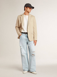The glorious Nineties wrapped up in a sneaker. The Stardan sneakers pay homage to the basketball icons of that decade, while keeping an eye on the present. This version with a white leather upper accented with all-over black lettering features an ice-gray suede star and toe. The white leather heel tab and white laces add the finishing touch. DETAILS Item No. GMF00128.F006596.10276 - Upper in white leather with all-over black lettering - Ice-gray suede star - White leather heel tab - Ice-gray suede toe - White laces - Vintage finish - Upper: 43% textile polyurethane, 27% cotton, 20% cellulose, 10% cow leather - Lining: 42% cotton, 26% cow leather, 19% textile polyurethane, 8% polyester, 5% viscose - Sole: 100% rubber - Handmade - Made in Italy