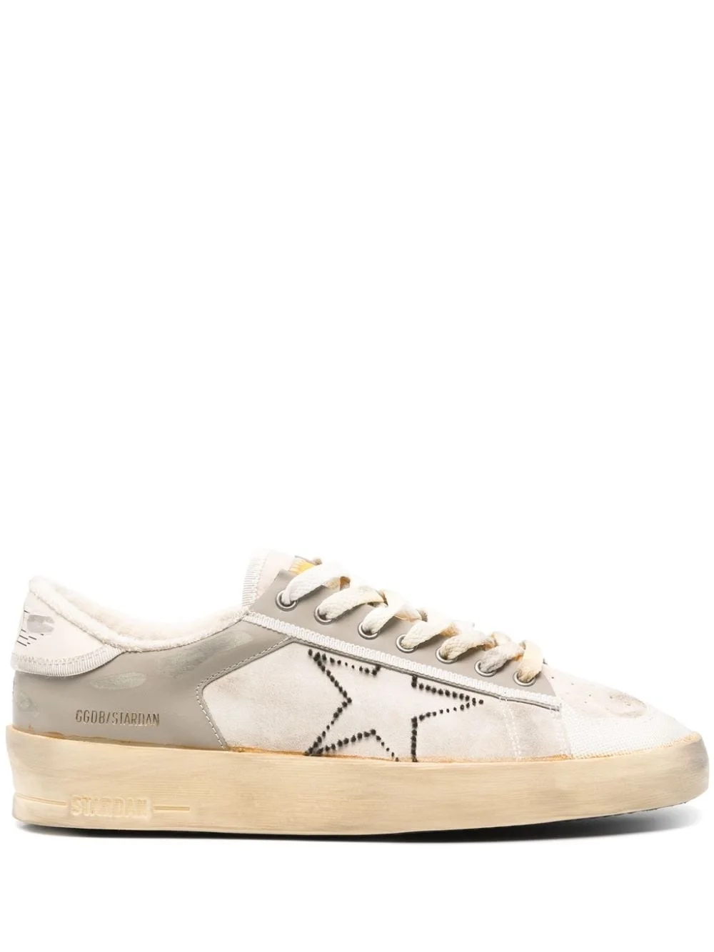 Stardan sneakers Highlights - Beige - Calf leather - Suede panelling - Distressed finish - Grosgrain ribbon trim - Signature star patch to the sides - Logo patch at the tongue - Front lace-up fastening - Perforated toebox - Round toe - Flat rubber sole Made in Italy Composition Lining: Calf Leather 100%, Cotton 100% Outer: Calf Suede 100%, Calf Leather 100% Sole: Rubber 100% SIZE & FIT Measurement HEEL 0.98 in(2.5 cm) Sole height 0.78 in(2 cm)