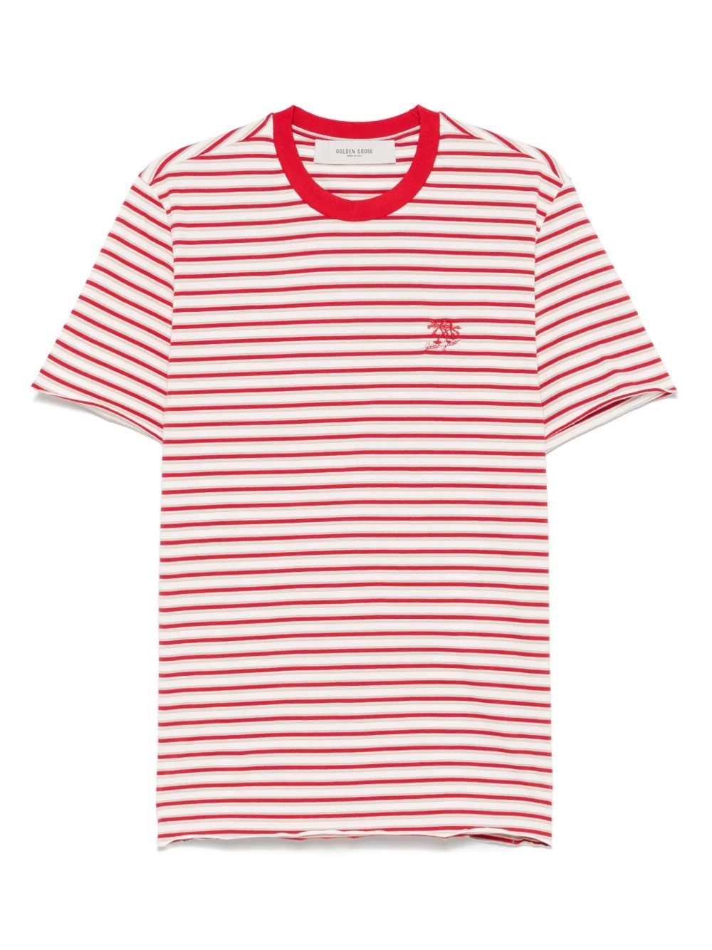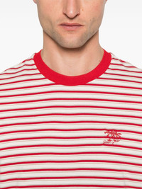 striped T-shirt Highlights - White - Embroidered logo to the front - Crew neck - Short sleeves Made in Italy Composition Polyester 100%, Cotton 100%, Acrylic 45%, Viscose 45%, Nylon 8%, Elastane 2% SIZE & FIT Model measurements Height 6 ft 2 in(1.87 m) Bust/Chest 37.79 in(96 cm) Hips 38.18 in(97 cm) Waist 31.49 in(80 cm) FittingInformation Designed for a relaxed fit, this piece allows for comfort and movement when worn Made from a midweight non-stretch fabric, this piece offers minimal elasticity when worn
