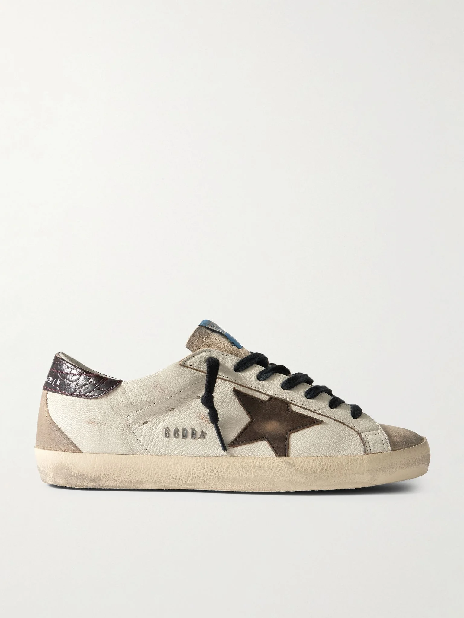 Super-Star Distressed Croc-Effect and Suede-Trimmed Leather Sneakers Neutral
