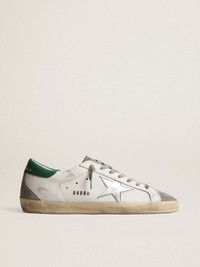 A timeless icon yet one that’s constantly evolving. At Golden, we love taking our classics and reworking them all the time, always from a new angle. These men’s Super-Star with a white leather upper feature a silver metallic leather star and a green leather heel tab. The dark gray suede tongue and laces with contrasting logo add the finishing touch. DETAILS Item No. GMF00102.F004167.82171 - White leather upper - Silver metallic leather star - Green leather heel tab - Gray laces with contrasting logo - Vintage finish - Upper: 100% cow leather - Lining: 49% cow leather, 41% cotton, 7% polyester, 3% textile polyurethane - Sole: 100% rubber - Handmade - Made in Italy