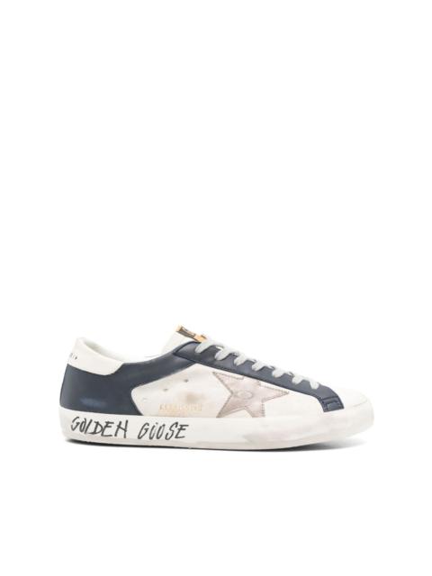 Super Star Double Quarter sneakers Highlights - Black/light beige - Calf suede - Distressed effect - Panelled design - Front lace-up fastening - Logo print to the rear - Swarovski crystal embellishment - Perforated detailing - Signature star patch to the sides - Logo patch at the tongue - Round toe - Branded leather insole - Flat rubber sole Made in Italy Composition Outer: Calf Suede 100%, Rubber 100% Lining: Fabric 100%, MIRUM 100% Filling: Calf Leather 100% Sole: Rubber 100% SIZE & FIT Measurement HEEL 1.57 in(4 cm) Sole height 0.59 in(1.5 cm)