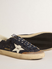 A timeless icon yet one that’s constantly evolving. At Golden, we love taking our classics and reworking them all the time, always from a new angle. These Super-Star with a dark blue nappa leather upper feature a white leather star, heel tab and tongue. The tobacco-colored suede insert on the toe and dark blue laces add the finishing touch. DETAILS Item No. GMF00107.F006039.50862 - Dark blue nappa leather upper - White leather star - White leather heel tab - White leather tongue - Tobacco-colored suede insert on the toe - Dark blue laces - Vintage finish - Upper: 72% sheepskin leather, 28% cow leather - Lining: 41% cotton, 31% cow leather, 18% textile polyurethane, 7% polyester, 3% viscose - Sole: 100% rubber - Handmade - Made in Italy