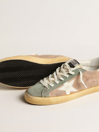 A timeless icon yet one that’s constantly evolving. At Golden, we love taking our classics and reworking them all the time, always from a new angle. With a light brown suede upper, these Super-Star feature a white nappa leather star, a sand-colored leather heel tab and a beige nylon tongue. The military-green suede inserts and toecap and the white laces add the finishing touch. DETAILS Item No. GMF00101.F004028.82123 - Light brown suede upper - White nappa leather star - Sand-colored leather heel tab - Military-green suede inserts and toecap - Beige nylon tongue - White laces - Vintage finish - Upper: 80% cow leather, 17% polyamide, 3% sheepskin leather - Lining: 49% cow leather, 41% cotton, 5% polyamide, 5% textile polyurethane - Sole: 100% rubber - Handmade - Made in Italy