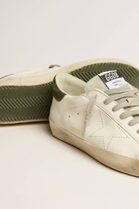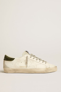 A timeless icon yet one that’s constantly evolving. At Golden, we love taking our classics and reworking them all the time, always from a new angle. These Super-Star with a white bio-based leather upper feature a perforated star and a green lizard-print heel tab. Gray laces add the finishing touch. DETAILS Item No. GMF00262.F005227.10802 - Color: white - Perforated star - Green lizard-print leather heel tab - Gray tongue - Gray laces - Vintage finish - Upper: 42% textile polyurethane, 26% cotton, 19% cellulose, 13% cow leather - Lining: 49% textile polyurethane, 32% cotton, 15% viscose, 4% polyester - Sole: 100% rubber - Handmade - Made in Italy