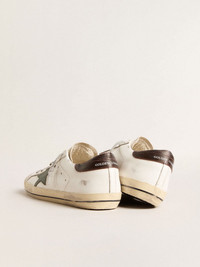 Men’s Super-Star in white leather with green star and animal-print heel tab