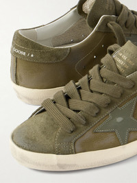 Super-Star Distressed Suede-Trimmed Full-Grain Leather Sneakers Army green