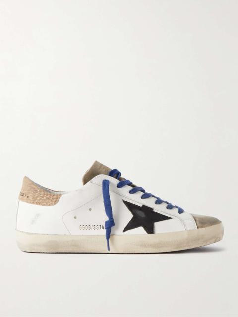 Golden Goose's 'Super-Star' sneakers are deliberately distressed to create that authentic vintage look of skate shoes. Detailed with signature stars and logos at the sides, they've been made in Italy from leather and feature lizard-effect trims. Size & Fit - Fits true to size. Take your normal size - Only available in full sizes, go up to the nearest whole size if you take a half size - European sizing Details & Care - Cream and dark-grey leather, brown lizard-effect leather (Cow) - Lace-up - Style number: GMF00101.F007516