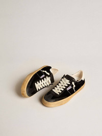 Starting from the 60s, the Soul Star has transformed a sneaker from a performance tool into a life companion. This men's model features a black velvet upper with tone-on-tone suede inserts. The white leather heel tab and black laces add the finishing touch. DETAILS Item No. GMF00464.F005055.90415 - Black velvet upper - White leather heel tab - Black suede inserts - Black laces - Vintage finish - Upper: 41% cow leather, 39% viscose, 20% cuprammonium rayon - Lining: 45% textile polyurethane, 33% cotton, 14% viscose, 8% polyester - Sole: 100% rubber - Handmade - Made in Italy