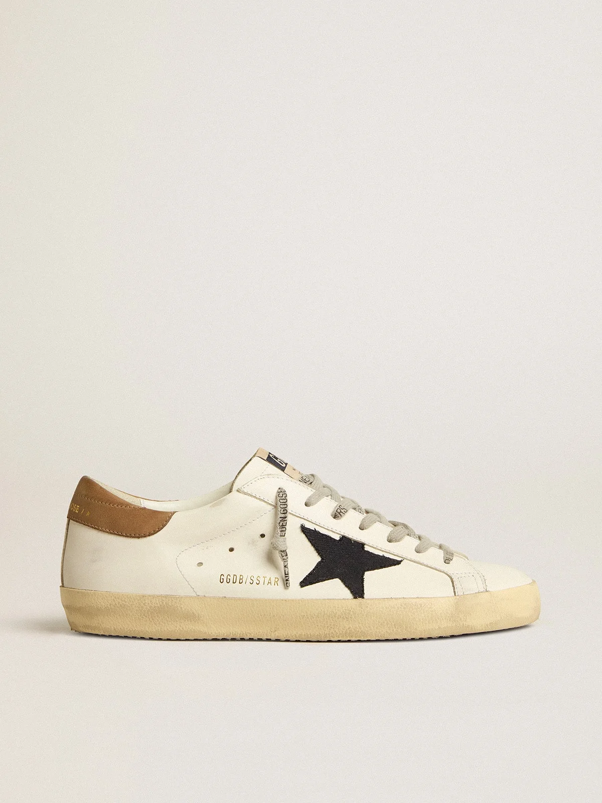 A timeless icon yet one that’s constantly evolving. At Golden, we love taking our classics and reworking them all the time, always from a new angle. These Super-Star with a white leather upper feature a navy-blue canvas star and a tobacco leather heel tab. The ice-gray laces with contrasting black logo add the finishing touch. DETAILS Item No. GMF00101.F005145.11657 - Color: white - Navy-blue canvas star - Tobacco-colored leather heel tab - Ice-gray laces with contrasting black logo - Vintage finish - Upper: 97% cow leather, 3% cotton - Lining: 41% cotton, 31% cow leather, 18% textile polyurethane, 7% polyester, 3% viscose - Sole: 100% rubber - Handmade - Made in Italy