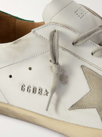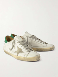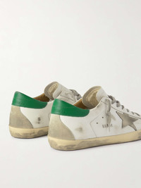 No two pairs of Golden Goose sneakers are ever the same - the distressed appearance is done by hand and helps avoid that awkward phase of looking too new. These low-profile 'Superstars' are made from leather that breaks in nicely over time and detailed with silver-tone metal lettering, as well as the brand's trademark suede star. Size & Fit - Fits true to size. Take your normal size - Only available in full sizes, go up to the nearest whole size if you take a half size - European sizing Details & Care - White and green leather, off-white suede - Silver-tone metal designer emblem, distressed, leather and terry linings, rubber soles - Lace-up - Come with dust bag - Style number: GMF00102.F002180.10802 - Made in Italy
