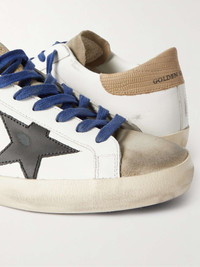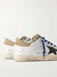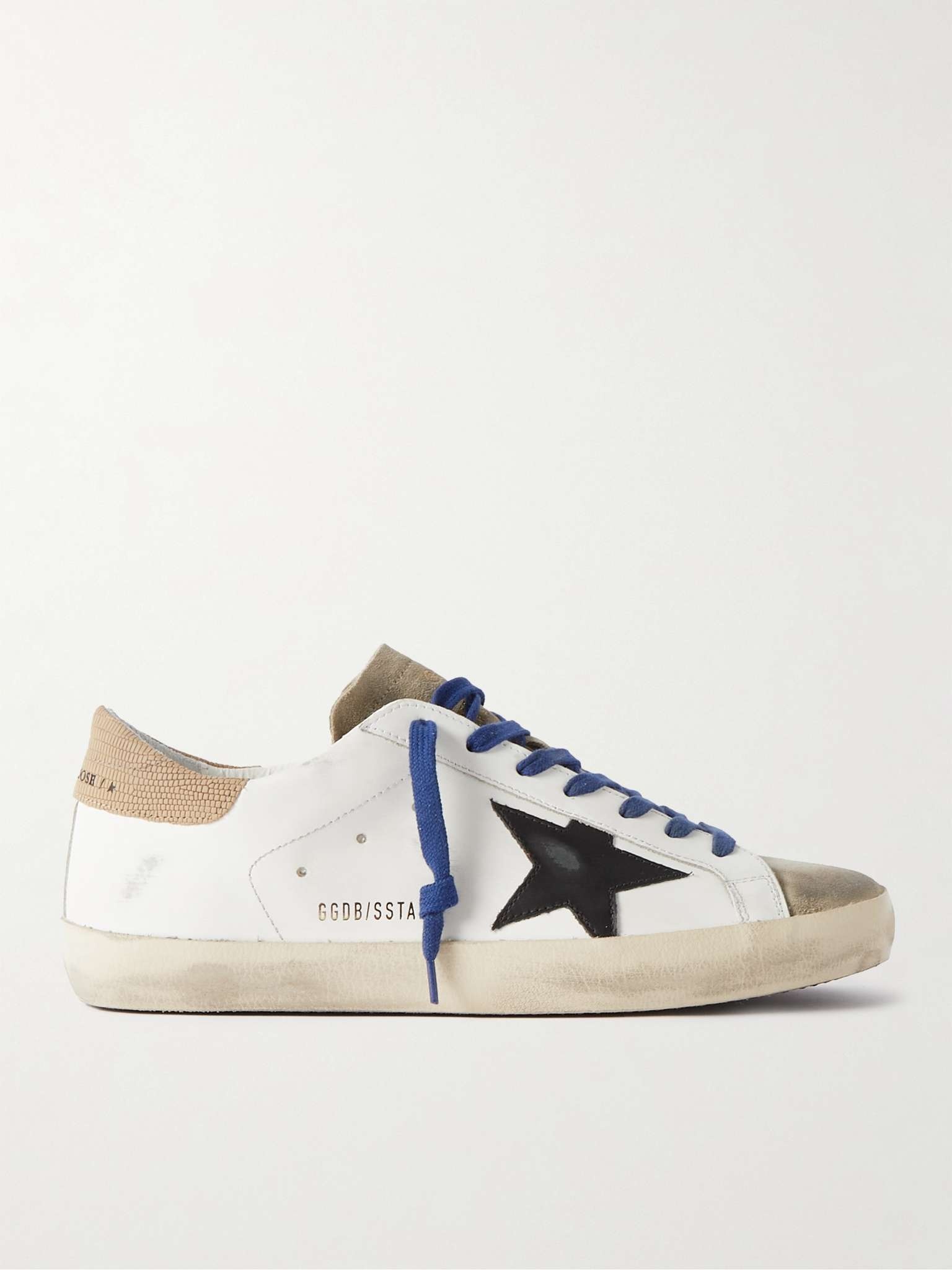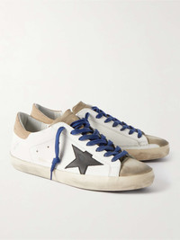 Inspired by retro athletic shoes, Golden Goose's 'Superstar' sneakers have been purposely distressed. They've been handmade in Italy from soft leather and suede, and detailed with the label's signature star patch on both sides. Wear yours with joggers or jeans. Size & Fit - Fits true to size. Take your normal size - European sizing Details & Care - White leather (Caw), off-white suede - Designer emblems, leather and terry linings, rubber soles - Lace-up - Designer colour: White/Taupe/Black/Light Brown - Come with dust bag - Made in Italy