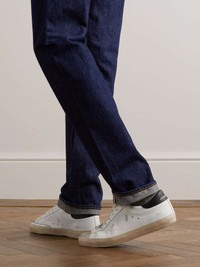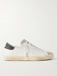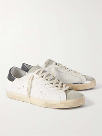 Golden Goose's 'Superstar' sneakers are stamped with a tongue-in-cheek disclaimer that says they're only intended for skateboarding, but the label will probably forgive you for using other modes of transport. Treated to look scuffed from the very first wear, this pair has been made in Italy from leather and supple suede. They're topped with black heel tabs and perforations forming the label's star. Size & Fit - Fits true to size. Take your normal size - Only available in full sizes, go up to the nearest whole size if you take a half size - European sizing Details & Care - White and black leather, light-grey suede (Cow) - Lace-up - Style number: GMF00105.F003347.10220