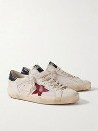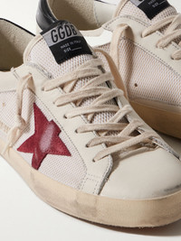 Superstar Distressed Suede-Trimmed Leather and Mesh Sneakers Off-white