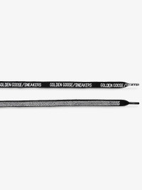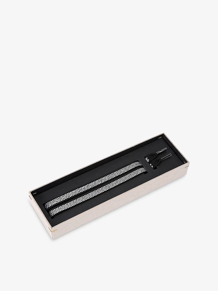 PRODUCT DETAILS - Golden Goose woven laces - 100% polyester - Self-tie fastening - All-over Swarovski crystal embellishments, brand print at reverse, tonal aglets, branding at aglets - Small length 110cm, large length 130cm - Hand wash Ref: R04447311