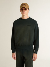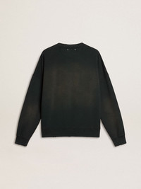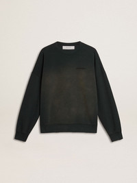 Unisex sweatshirt in worn black cotton with logo embroidery
