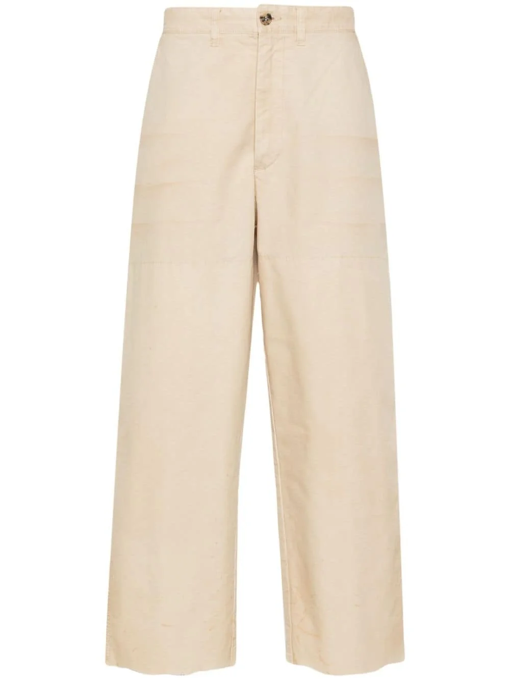 tapered-leg cotton trousers Highlights - Medium beige - Cotton - Belt loops - Two diagonal pockets to the sides - Two rear button-fastening jetted pockets - Raw-cut edge - Tapered leg - Front button and zip fastening Made in Italy Composition Lining: Polyester 65%, Cotton 35% Outer: Cotton 100% SIZE & FIT Model measurements Height 6 ft 2 in(1.87 m) Bust/Chest 36.41 in(92.5 cm) Hips 35.43 in(90 cm) Waist 29.52 in(75 cm) FittingInformation Designed for a tapered leg, offering a loose unrestricted fit over the leg with a closer fit towards the ankle Made from a midweight non-stretch fabric This piece fits true to size – take your usual size Washing instructions Machine Wash