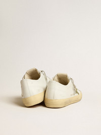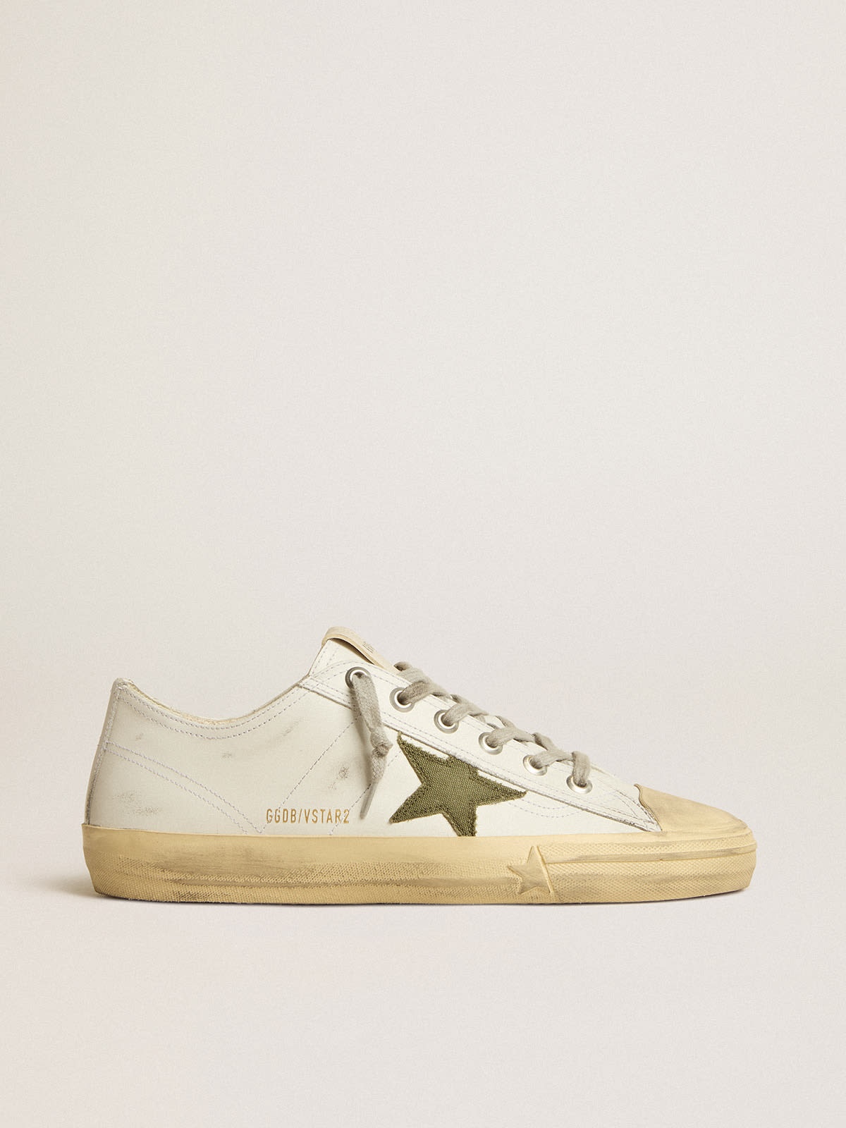 Beauty that lies in simplicity: in our V-Star sneakers, an essential shape meets stylish detail. This model features a white leather upper with a green canvas star and white leather heel tab. And ice-gray laces add the finishing touch. DETAILS Item No. GMF00129.F005295.10502 - Color: white - Green canvas star - White leather heel tab - Ice-gray laces - Vintage finish - Upper: 97% cow leather, 3% sheepskin leather - Lining: 54% cotton, 39% cow leather, 5% polyester, 2% textile polyurethane - Sole: 100% rubber - Handmade - Made in Italy