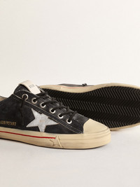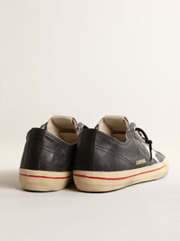 Beauty that lies in simplicity: in our V-Star sneakers, an essential shape meets stylish detail. This LTD model, with a vintage-effect dark blue leather upper, features a silver metallic leather star and black leather heel tab. The black stripe on the foxing and black laces add the finishing touch. DETAILS Item No. GMF00129.F004630.50580 - Color: dark blue - Silver metallic leather star - Black leather heel tab - Rubber toecap - Black stripe on the foxing - Black laces - Vintage finish - Upper: 89% cow leather, 7% acrylic, 3% sheepskin leather, 1% polyester - Lining: 54% cotton, 39% cow leather, 5% polyester, 2% polyurethane - Sole: 100% rubber - Handmade - Made in Italy