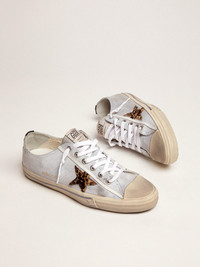 The iconic, timeless design of these sneakers is updated in a contemporary key. V-Star sneakers are inspired by 1970s basketball, boasting a minimalist silhouette with rubber toecap. This model is rendered even more special thanks to the denim upper, combined with the leopard-print pony skin star and black vertical strip. DETAILS Item No. GMF00129.F001465.81107 - Upper: 89% cotton, 11% cow leather - Lining: 60% cotton, 40% cow leather - Sole: 100% rubber - Denim upper - Leopard-print pony skin star - Black vertical strip on the back - Made in Italy - Handcrafted - Made in Italy