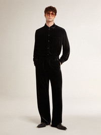 Inspired by the electric energy of the Nineties, the collection celebrates the limitless power of shared dreams. Moved by passion, each design captures the meaning of togetherness and the power of music. In black silk blend, this shirt features a boxy fit and a velvet effect. The front pocket and logoed embroidery on the cuff adds the finishing touch. DETAILS Item No. GUP02035.P001160.90100 - Journey Collection - Color: black - Boxy fit - Velvet effect - Front pocket - Logoed button fastening - Logoed embroidery on the cuff - Main material: 82% viscose, 18% silk - Pocket lining: 100% cotton - Made in Italy The model is 183 cm tall and is wearing a size S.