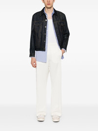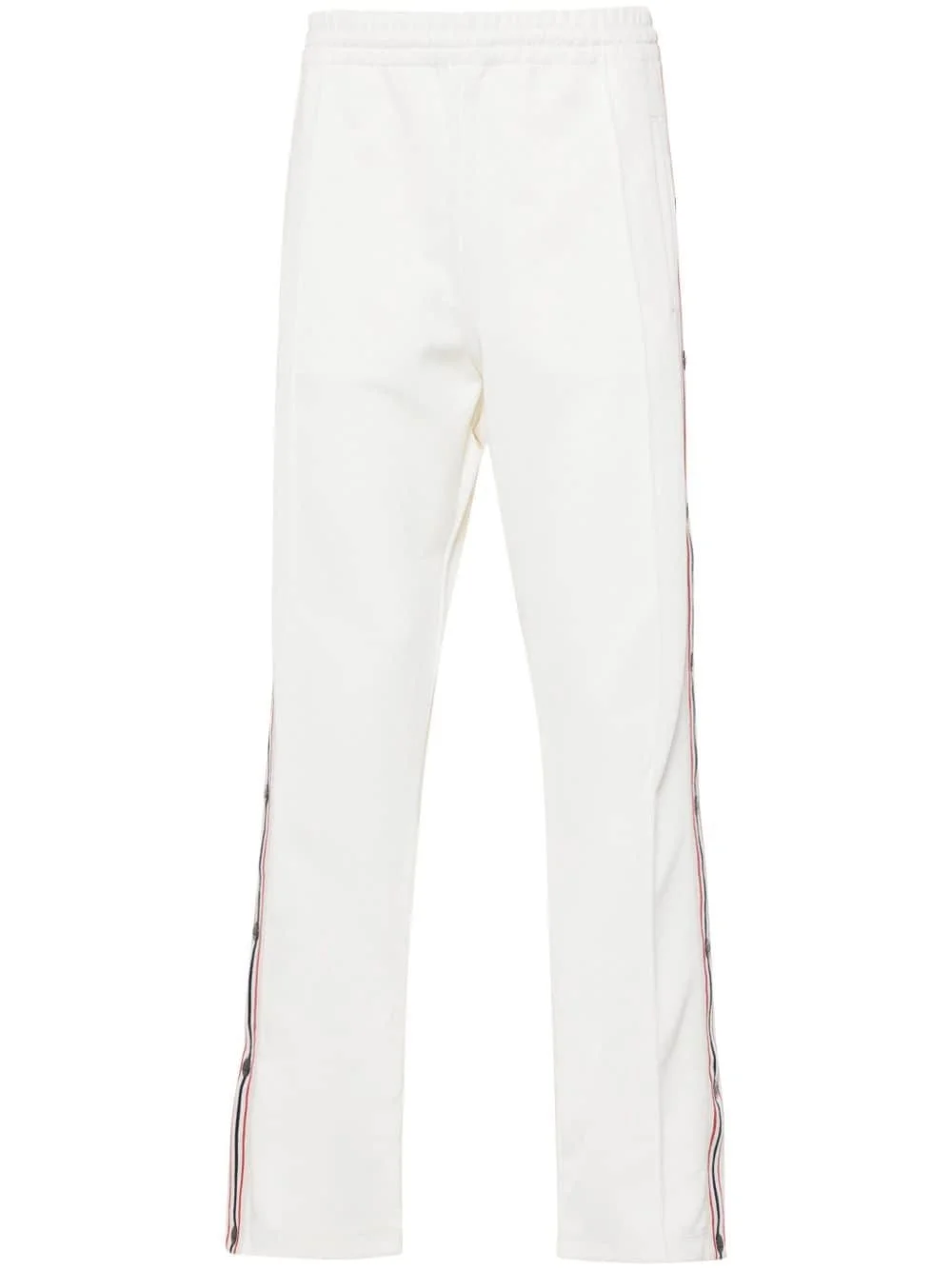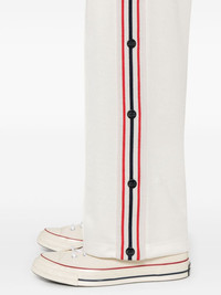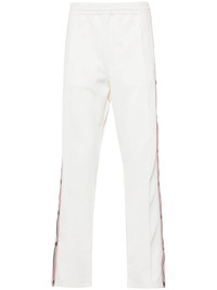 wide-leg cotton track pants Highlights - White/red/black - Cotton - Wide leg - Seam detailing - Elasticated waistband with internal drawstring - Side stripe detailing - Two front welt pockets - Rear patch pocket Made in Italy Composition Lining: Polyester 100%, Cotton 100% Outer: Polyester 100% SIZE & FIT Model measurements Height 6 ft 2 in(1.87 m) Bust/Chest 36.41 in(92.5 cm) Hips 35.43 in(90 cm) Waist 29.52 in(75 cm) FittingInformation Designed for a relaxed straight leg, allowing a comfortable and loose fit over the leg Adjust this piece’s waistband to your preference using the drawstring Made from a midweight non-stretch fabric, this piece offers minimal elasticity when worn This piece fits true to size – take your usual size