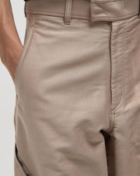 The Goldwin 0 FW25 Helicoid Wide Pants combine comfort and sculptural elegance. The wide-leg pants are constructed with a spiral structure that creates a three-dimensional silhouette. Made from cotton-silk moleskin, they offer a smooth feel, elegant sheen, and a natural structure that accentuates the design. - Loose fit - Multiple pockets on the front, back, and sides - Security pocket inside the front pocket - Tool pocket on the knee - Drawstring at the hem Article number: GZ75352-GJ Gender: men Color: GRAYISH BEIGE Material: 80% Cotton, 20% Silk