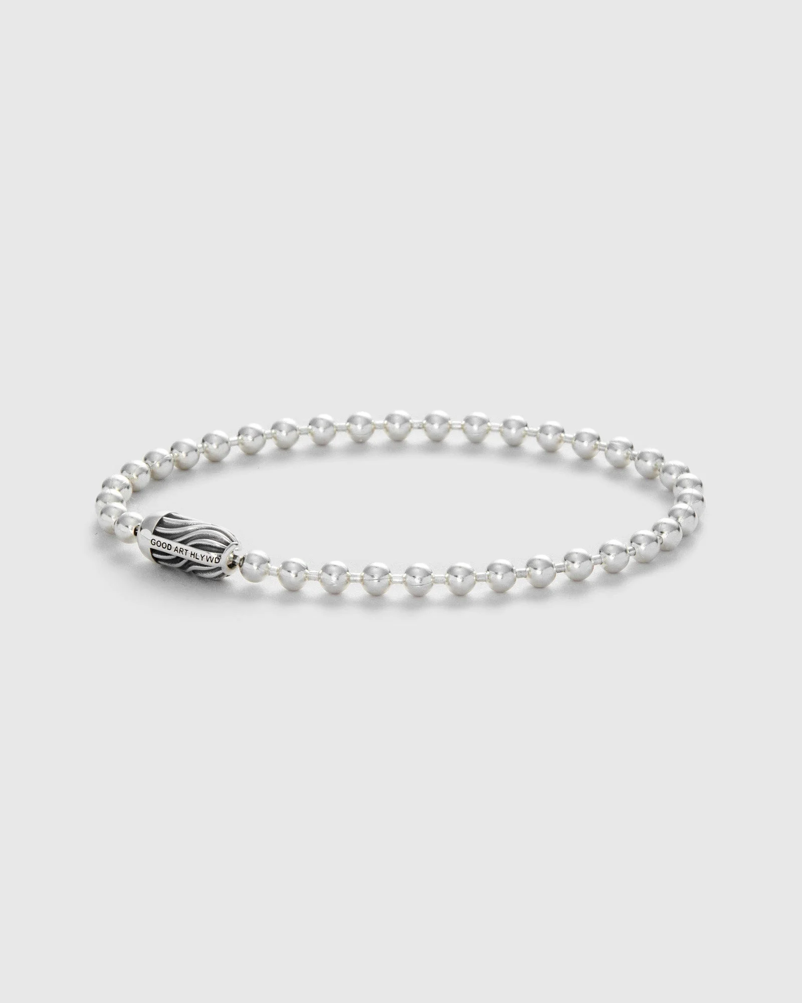 Good Art's Ball Chain is a refined take on the classic Americana accessory. Cast and finished entirely by hand, this chain has become a staple of Good Art's collection. This iteration features a custom-made spring loaded poplock closure with Good Art's "Dessert Sessions" motif, also made in house at their Los Angeles Foundry. - Dessert Sessions poplock clasp - Size A chain, 4.5mm width - 9" length, can be cut shorter - .925 Sterling Silver - Made at the Good Art HLYWD Foundry in Los Angeles, CA To determine your size, measure your wrist with flexible measuring tape snugly around the lower portion of your wrist.