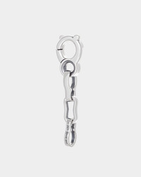 This sturdy keychain from GOOD ART HLYWD comprises a small “Sister” clasp and a short bottle-link chain, ideal for attaching to a belt loop and split ring. Understated in design yet sturdy and practical, the clasp features a simple scissor mechanism — meaning there are no springs or catches to wear out — with each component of the clasp and chain handmade in .925 sterling silver. Finished with subtle GOOD ART branding, the silver is dipped in sulphuric acid before being hand-burnished, creating an understated blackened contrast against the impeccably polished highlights. Made by GOOD ART HLYWD Handmade jewellery from the USA, designed by Josh Warner and crafted at The Foundry in Los Angeles. Product Details - .925 Sterling Silver - Size B - Clasp external diameter: 24mm - Clasp internal diameter: 13mm - Chain Length: 65mm