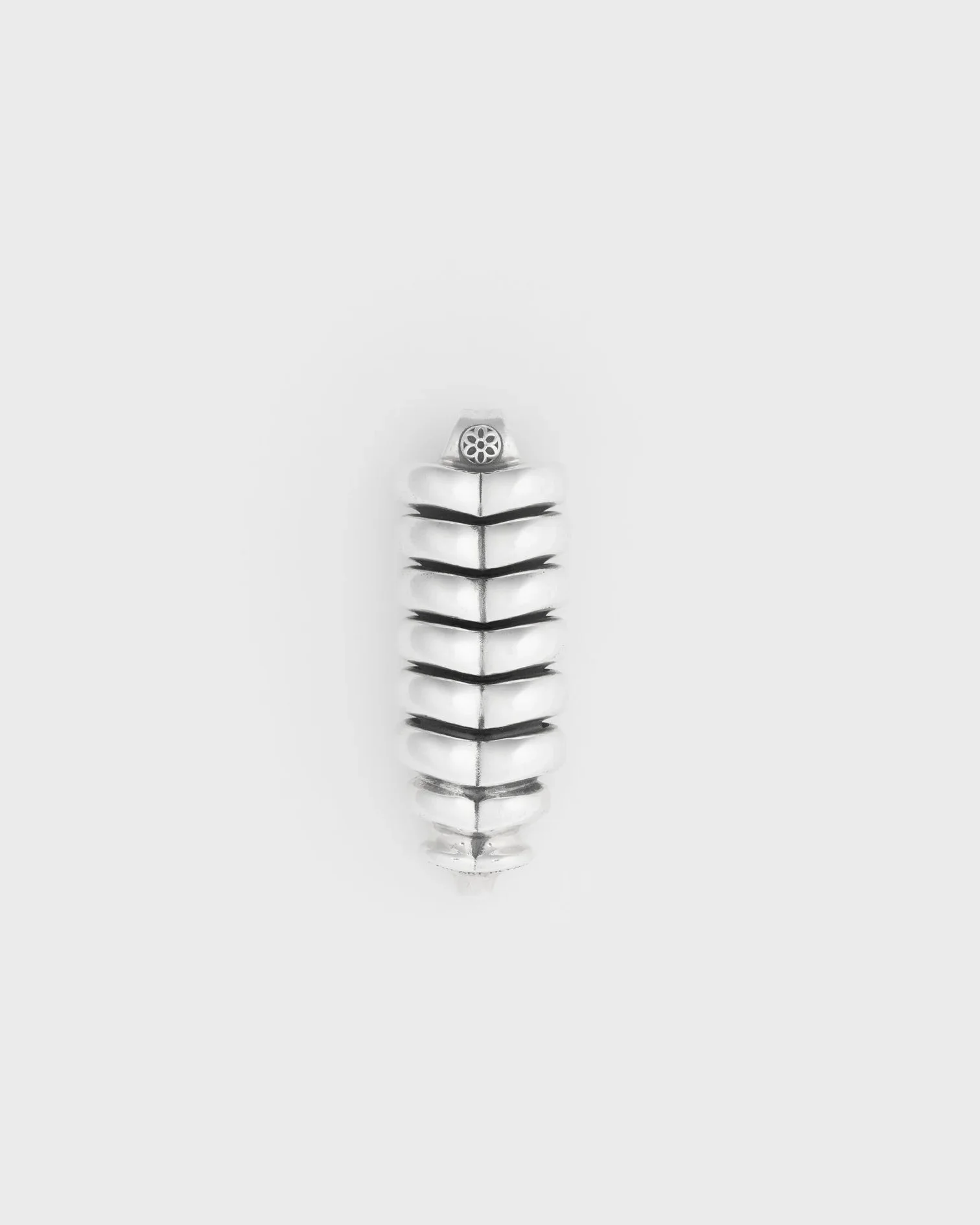 Handcrafted by our friends at GOOD ART HLYWD in Los Angeles, the Rattler Charm is a substantial piece, around the same size as a real rattlesnake tail — but a little less dangerous to procure! Each component is individually cast from .925 sterling silver, which, when assembled, allows for a pleasing movement and sound. Incorporating a noodle for attaching to a chain or split ring, the silver is dipped in sulphuric acid before being hand-burnished to create an understated blackened contrast against the impeccably polished highlights. Made by GOOD ART HLYWD Handmade jewellery from the USA, designed by Josh Warner and crafted at The Foundry in Los Angeles. Product Details - .925 Sterling Silver - Length: 72mm - Width: 26mm