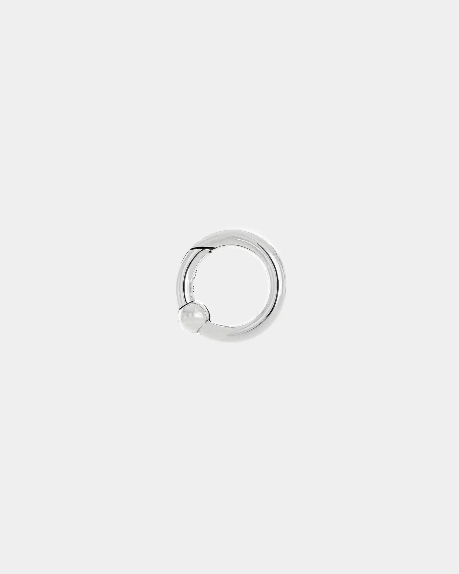 Hand-crafted solid cast .925 sterling silver smooth carabiner-style loop ring with spring-loaded gate. Secure your reigns, chains, and keys in one simple push. Finished with GOOD ART HLYWD hallmark. Made by GOOD ART HLYWD Handmade jewellery from the USA, designed by Josh Warner and crafted at The Foundry in Los Angeles. Product Details - .925 Sterling Silver - Diameter: 17mm