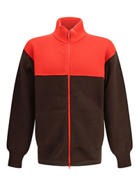 colourblock zip-fastening cardigan Highlights - Brown and orange - Colourblock design - High neck - Zip fastening - Long sleeves Made in Italy Composition Wool 100% Washing instructions Read Manufacturer Guidelines