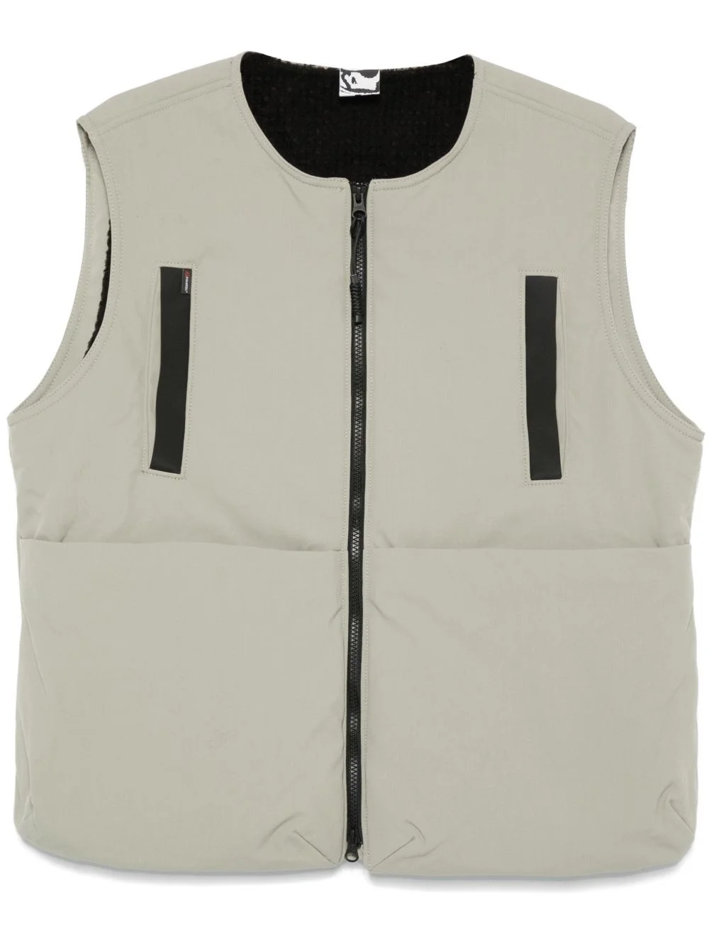 Deck Operator vest Highlights - Grey/black - Padded design - Insulated design - Front two-way zip fastening - Round neck - Sleeveless - Two chest welt pockets - Front zip fastening pockets - Faux-shearling lining - Straight hem Made in Italy Composition Outer: Polyamide 100%, Polyester 65%, Cotton 35% Lining: Polyester 100% SIZE & FIT FittingInformation Designed for a relaxed fit, this piece allows for comfort and movement when worn Made from a padded non-stretch fabric, giving it no natural elasticity