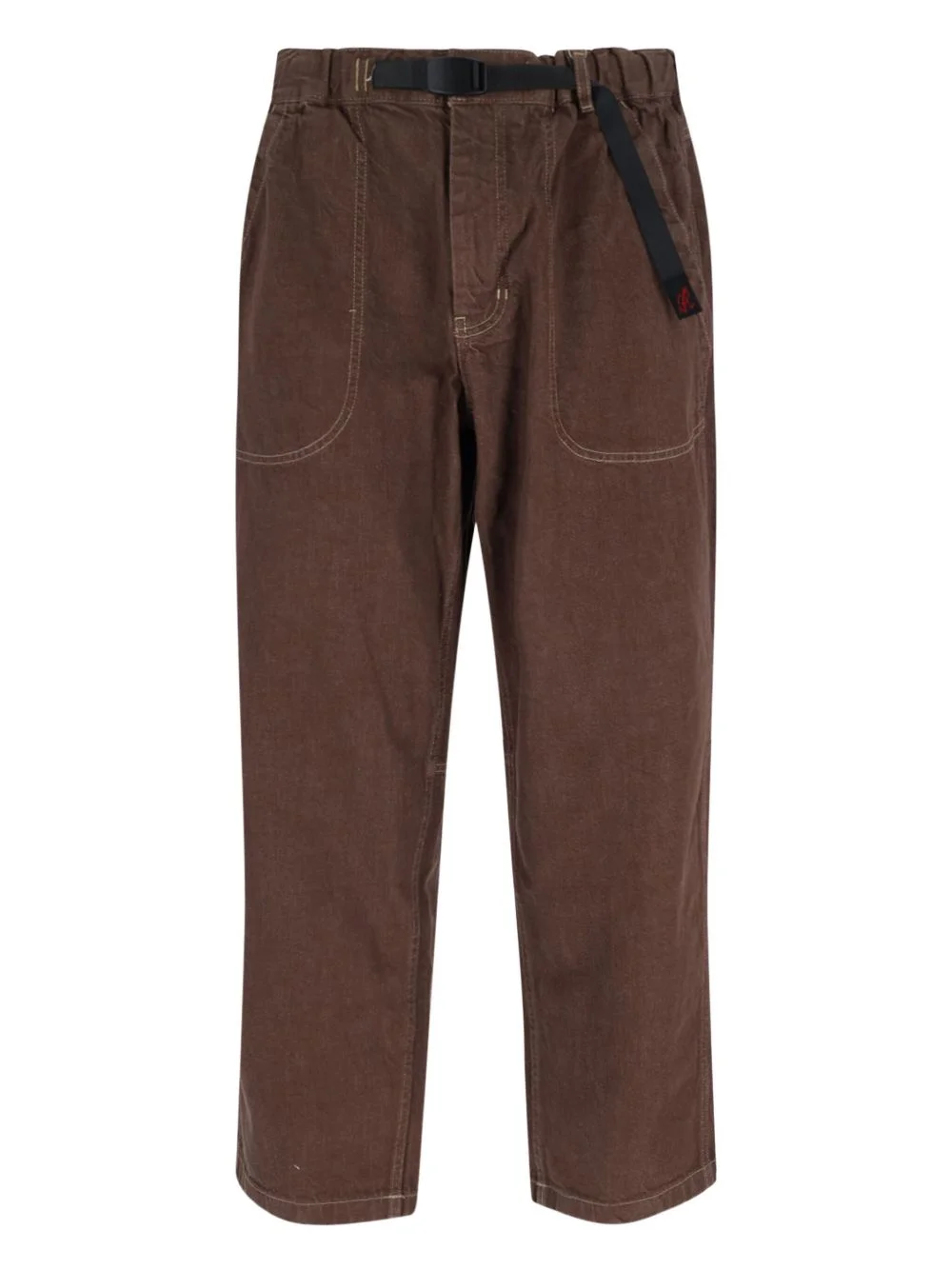 adjustable-waist topstitched jeans Highlights - Brown - Belted waist - Elasticated waistband - Patch pockets - Contrast topstitching Imported Composition Fabric 100% Washing instructions Read Manufacturer Guidelines