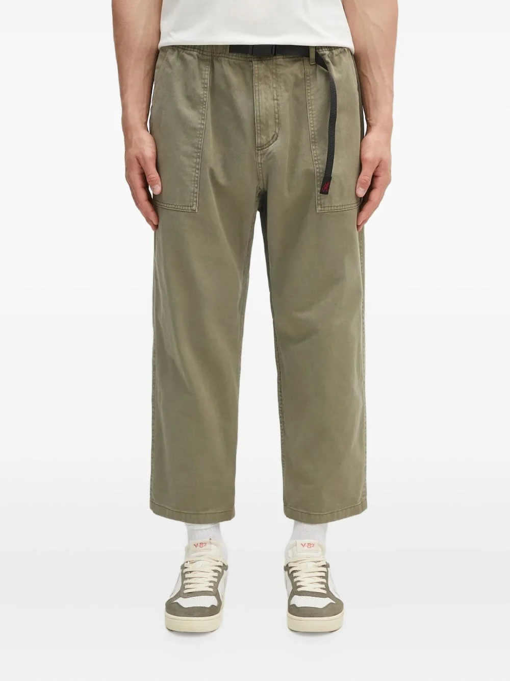 belted side-pocket trousers Highlights - Olive green - Adjustable belt - Side pockets - Elasticated waistband Imported Composition Organic Cotton 100% Washing instructions Read Manufacturer Guidelines