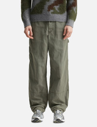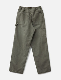 - Gramicci - Canvas Work Pant - Made of hemp twill fabric - Elasticated waistband with integrated belt - Zip closure - Multi-pocket design - Utility strap on left thigh - Stitched panel details above front hem - Color: Dusk Aged - Material: 100% Cotton - See more Pants and Clothing - Model wears size M - Model measures: Height 186cm, Chest 34”/86cm, Waist 28”/71cm, Hip 36”/91cm - Vendor Code: G5FM-P038