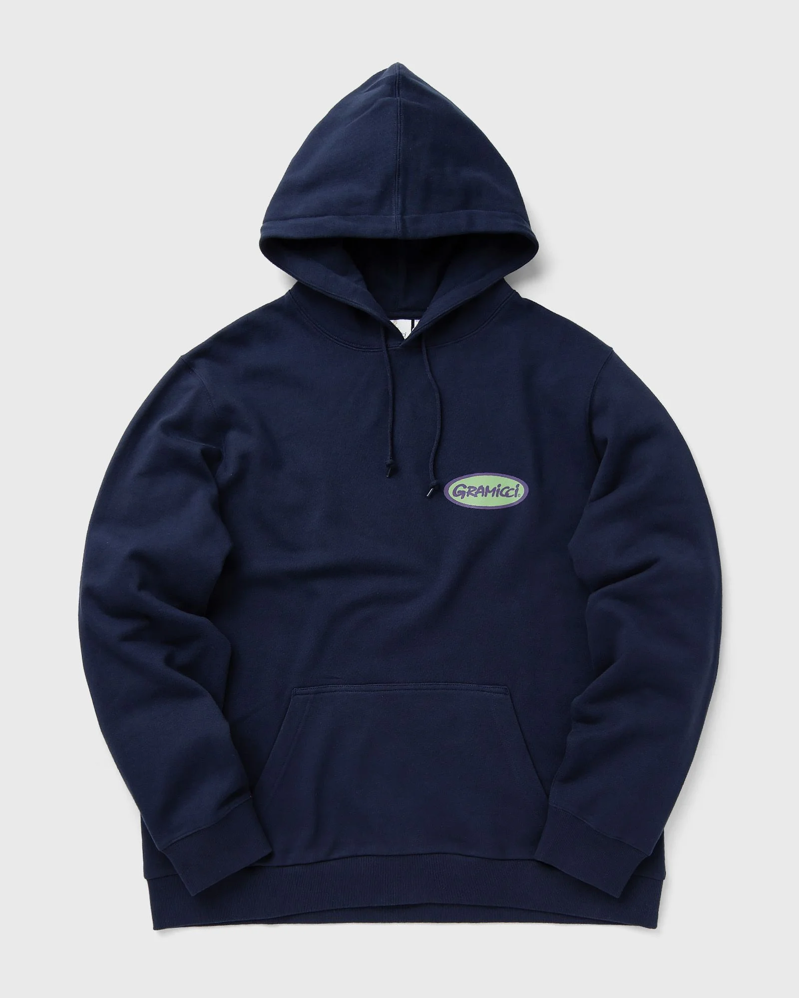 The Gramicci Oval Hooded Sweatshirt is made from soft cotton fleece. It features a drawstring hood, a kangaroo pocket and is finished with ribbed cuffs and hem. The graphic on the back and on the left chest showcases the Gramicci logo in a larger oval. - Hood with drawstring - Kangaroo pocket - Ribbed cuffs and hem Article number: G4SU-J095-25947925 Gender: men Color: NAVY Material: 100% Cotton