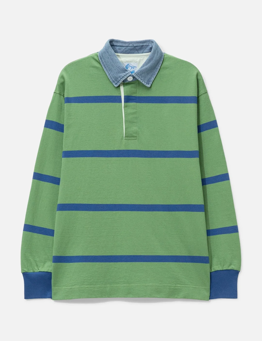 - Gramicci - Langdon Rugby Shirt - Regular fit - Made of cotton - Polo collar - Half-button closure - Ribbed cuffs - Brand label at side - Color: Olive/Blue - Material: 100% Cotton - See more Polos and Clothing - Model wears size M - Model measures: Height 186cm, Chest 34”/86cm, Waist 28”/71cm, Hip 36”/91cm - Vendor Code: G6SM-J059