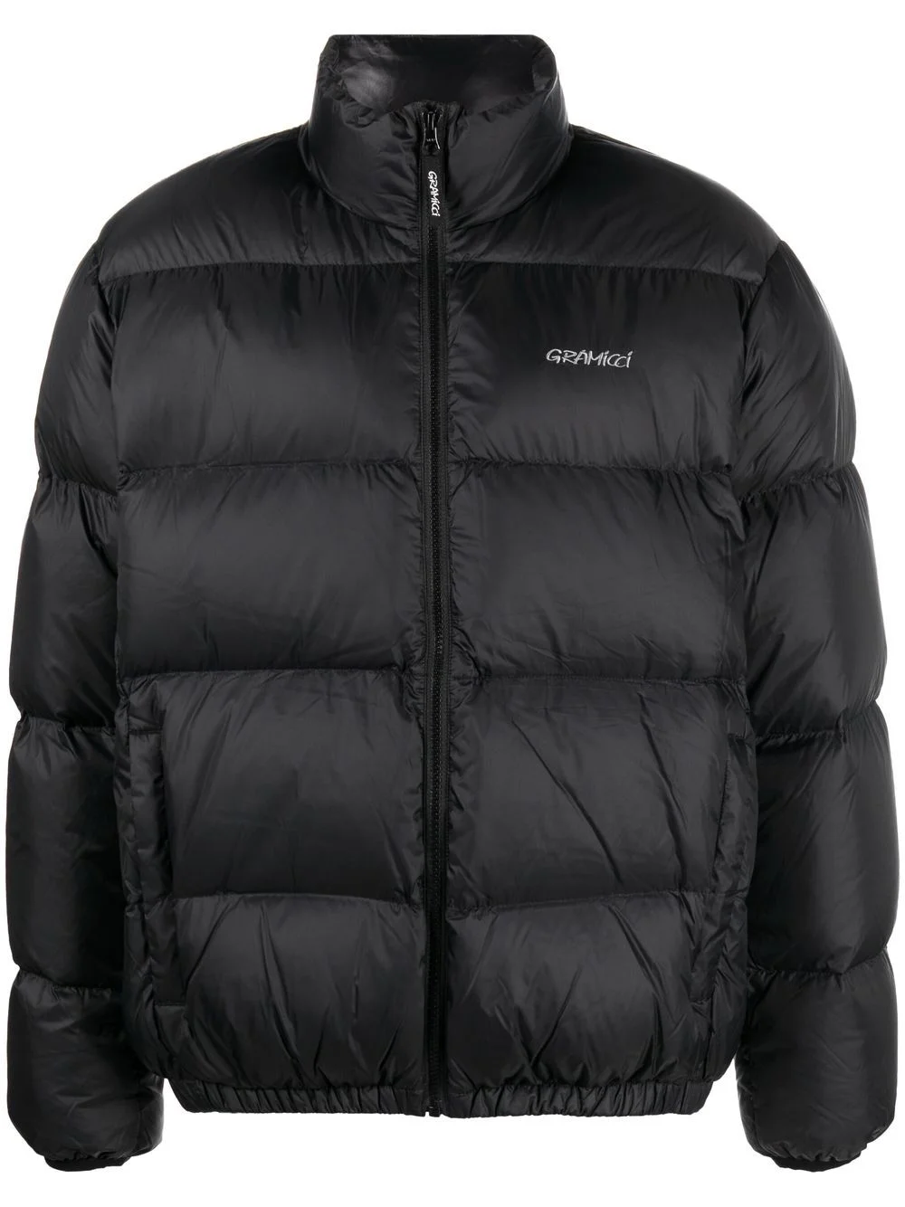 logo-embroidered down puffer jacket black feather down padded design embroidered logo at the chest stand-up collar front zip fastening two side slit pockets long sleeves straight hem Imported Composition Outer: Nylon 100% Lining: Polyester 100%, Down 80%, Feather 20% SIZE & FIT Model measurements Height 6 ft 2 in(1.88 m) Bust/Chest 36.61 in(93 cm) Hips 37.79 in(96 cm) Waist 28.74 in(73 cm) FittingInformation This piece fits true to size. We recommend you get your regular size Cut for a loose fit Made with a mid-weight non-stretch fabric Washing instructions Hand Wash