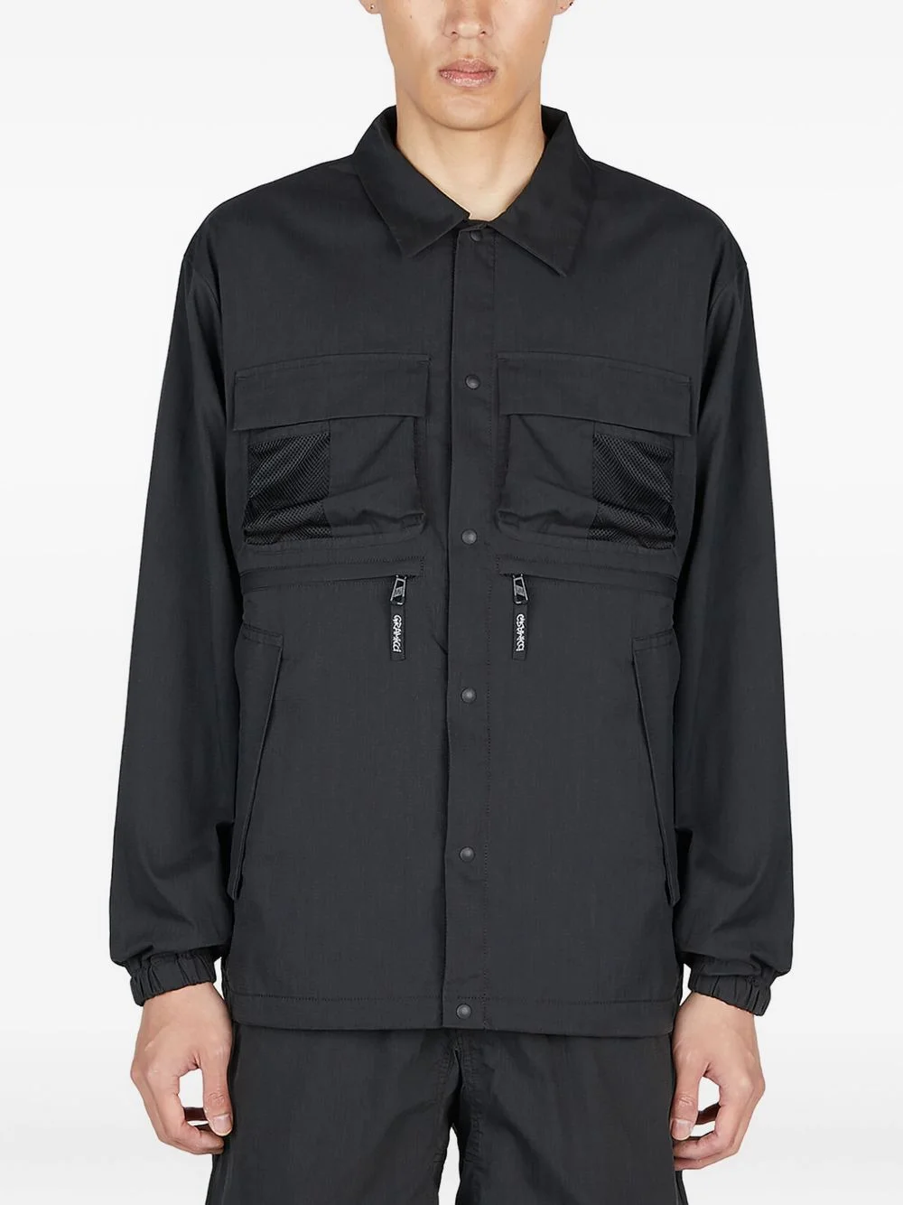 multi-pocket jacket Highlights - Black - Multiple pockets - Press stud front - Long sleeves - Elasticated cuffs - Straight hem Imported Composition Polyester 96%, Aramid 4% Washing instructions Read Manufacturer Guidelines