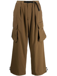 straight-leg cargo trousers Highlights - Olive green - Belted waist - Drop crotch - Two front cargo pockets - Elasticated waistband - Drawstring hem - Rear stud-fastening pocket - Straight leg Imported Composition Nylon 100% Washing instructions Machine Wash